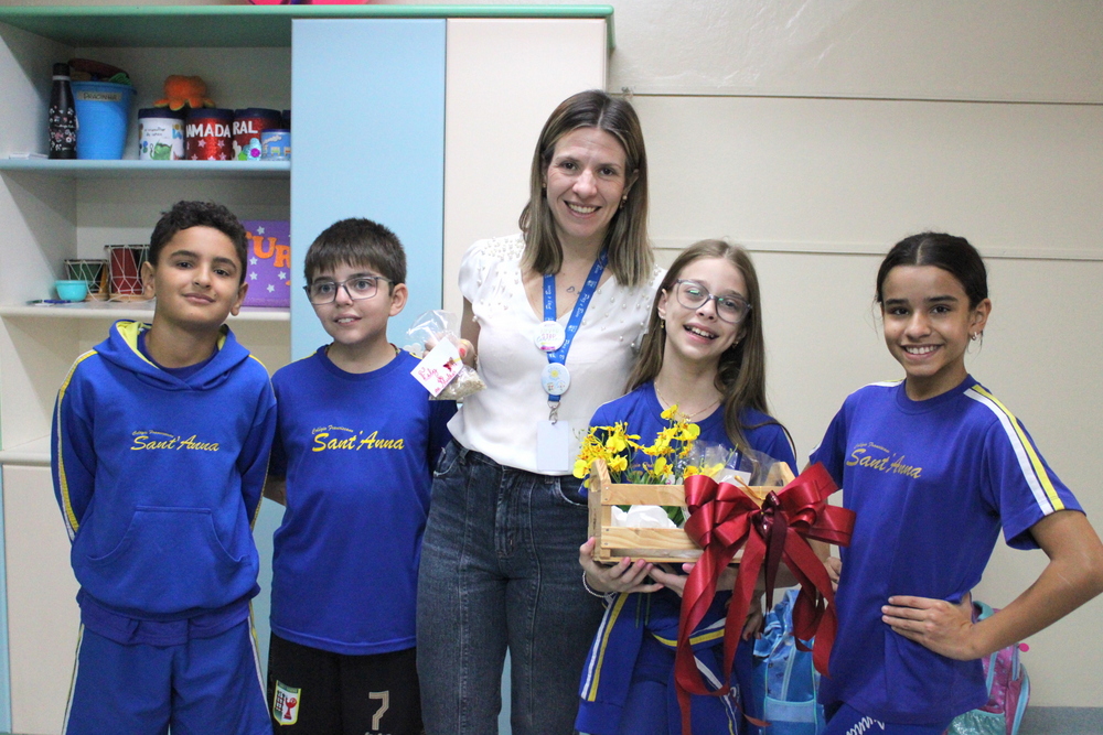 Em um gesto cheio de carinho e gratidão, os estudantes do 5º ano realizaram mais uma ação do projeto Mensageiros do Bem, preparando e entregando lembranças especiais para as mulheres do Sant'Anna.
